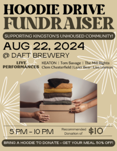 - Hoodie Drive Fundraiser – August 22 2024Daft Brewery + community volunteers are hosting a special evening of music and community support at Hoodies for the Homeless. This event aims to help those in need by collecting hoodie donations and raising funds for the Integrated Care Hub. Enjoy an incredible lineup of local musicians and make a difference in our community. Time: August 22nd, 2024 from 5:00pm-10:00pm, with live music from… Read more: Hoodie Drive Fundraiser – August 22 2024